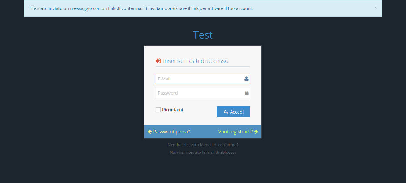 Verrà mostrato un'avviso dicendo che è stata inviata una email contenente il link di verifica.