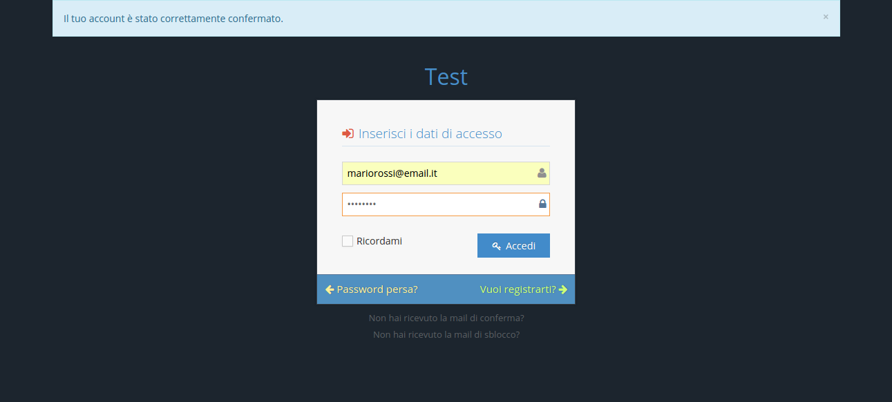 Successivamente si clicca su "Registrati" e si verrà reindirizzati alla schermata di Login.